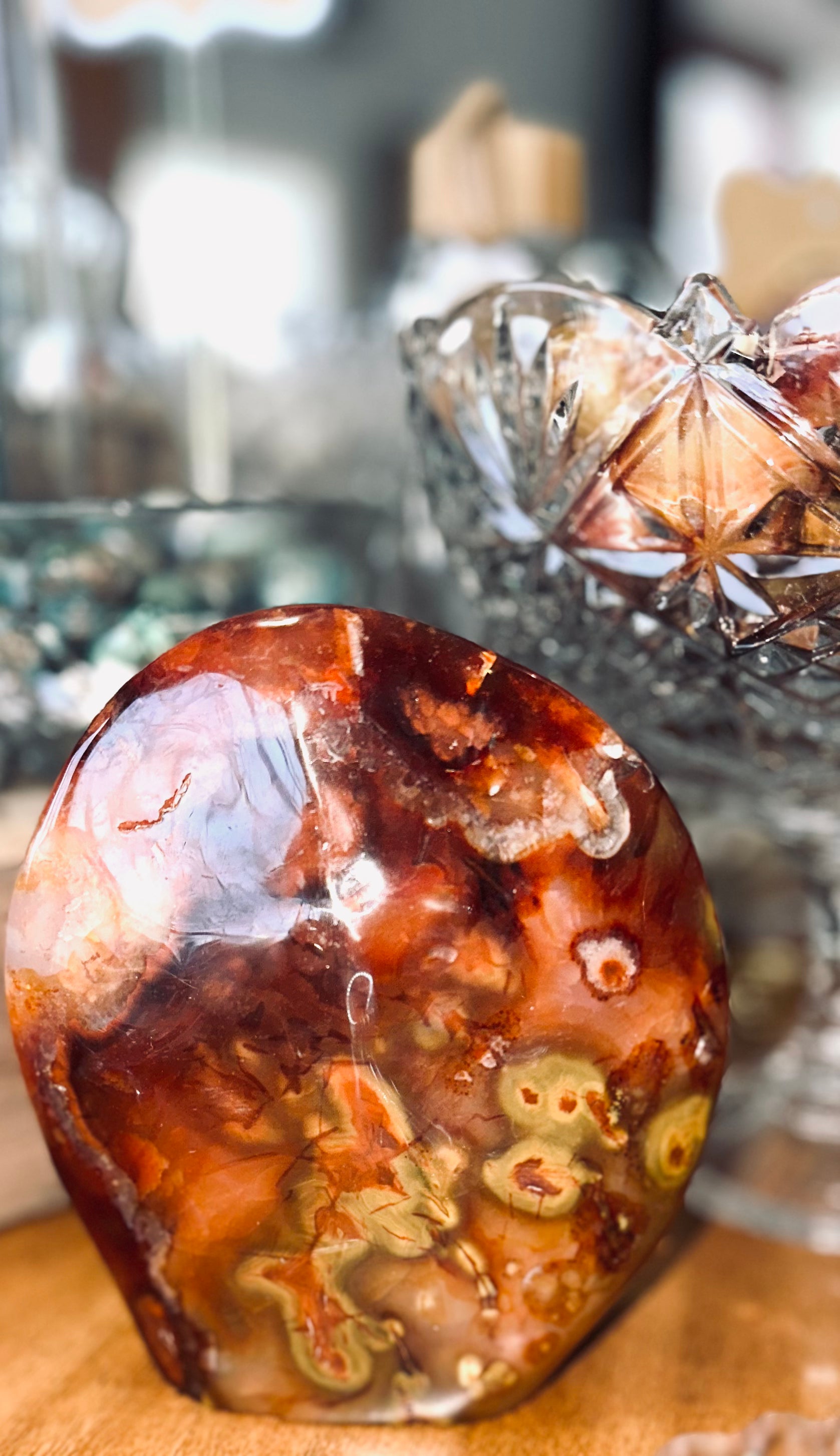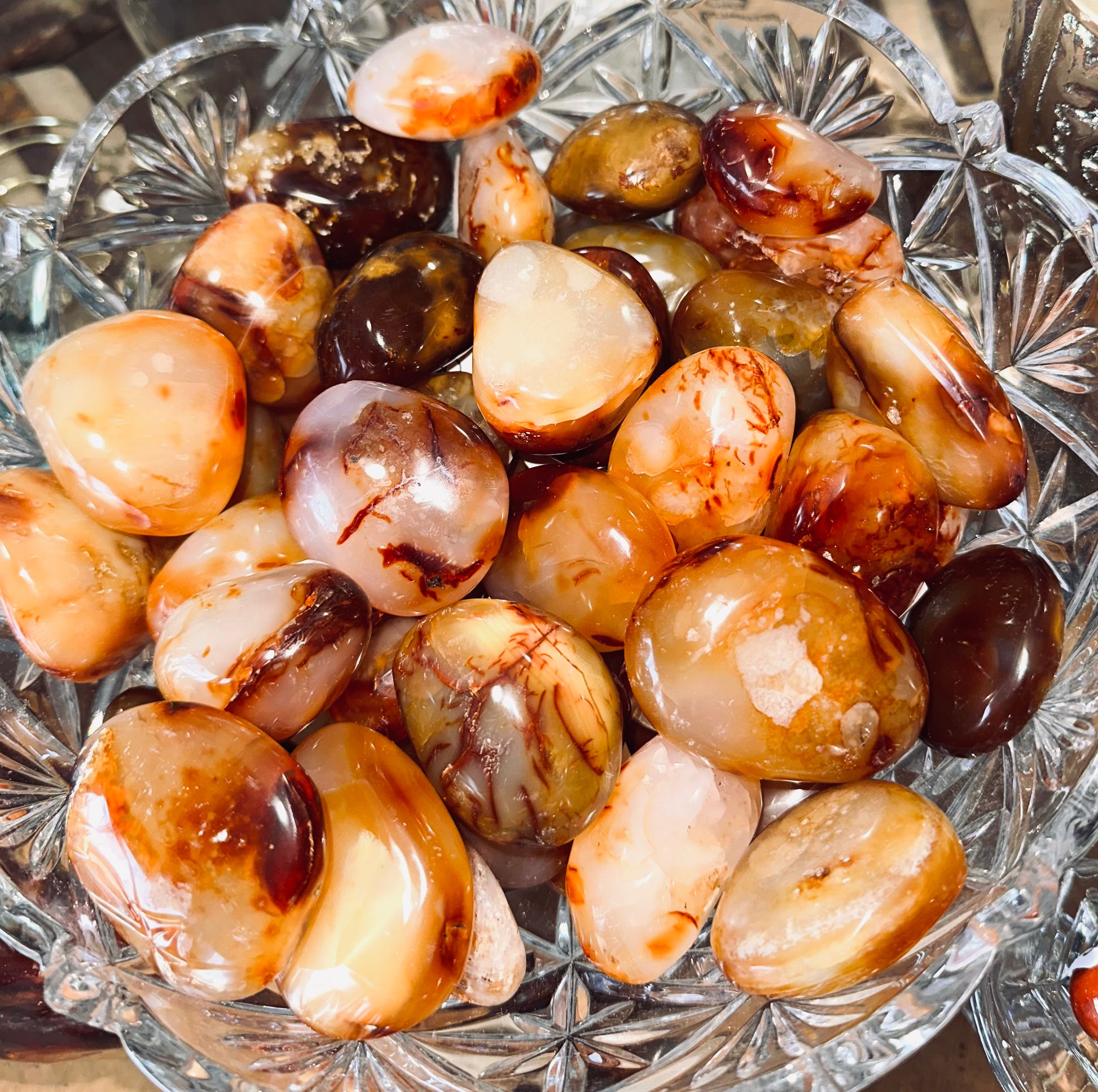 A stabilising stone, Carnelian restores vitality and motivation, and stimulates creativity. It gives courage, promotes positive life choices, dispels apathy and motivates for success. Carnelian is useful for overcoming abuse of any kind. It helps in trusting yourself and your perceptions.