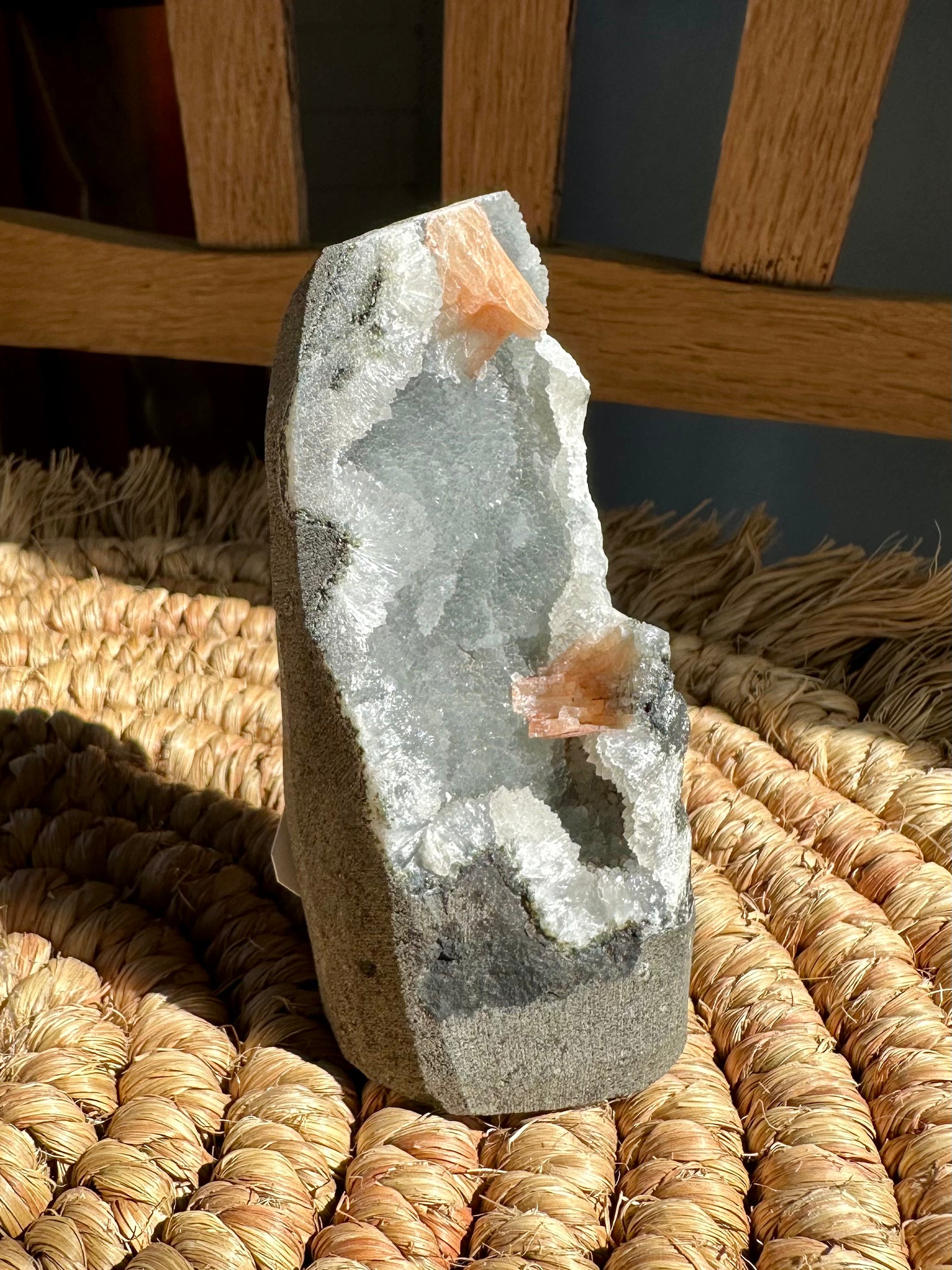 Chalcedony with Stilbite is an inspiring and powerful crystal, perfect for elevating awareness and providing a gentle energy of universal love, with a high spiritual vibration. It helps to open the heart chakra and deconstruct the walls we build around our hearts.