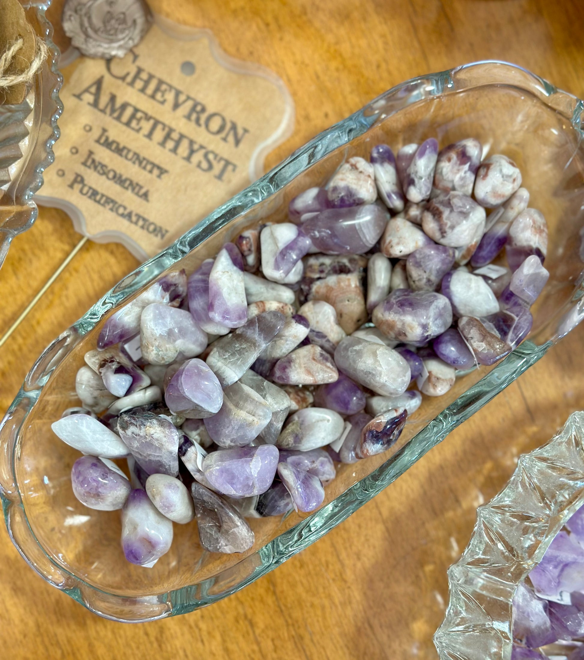 Chevron Amethyst soothes the mind, promoting spiritual awareness and psychic development. It is also a stone of protection, cleansing your aura and transmuting negative energy into positive. Peace of mind is one of Chevron Amethyst's most commonly cited benefits.