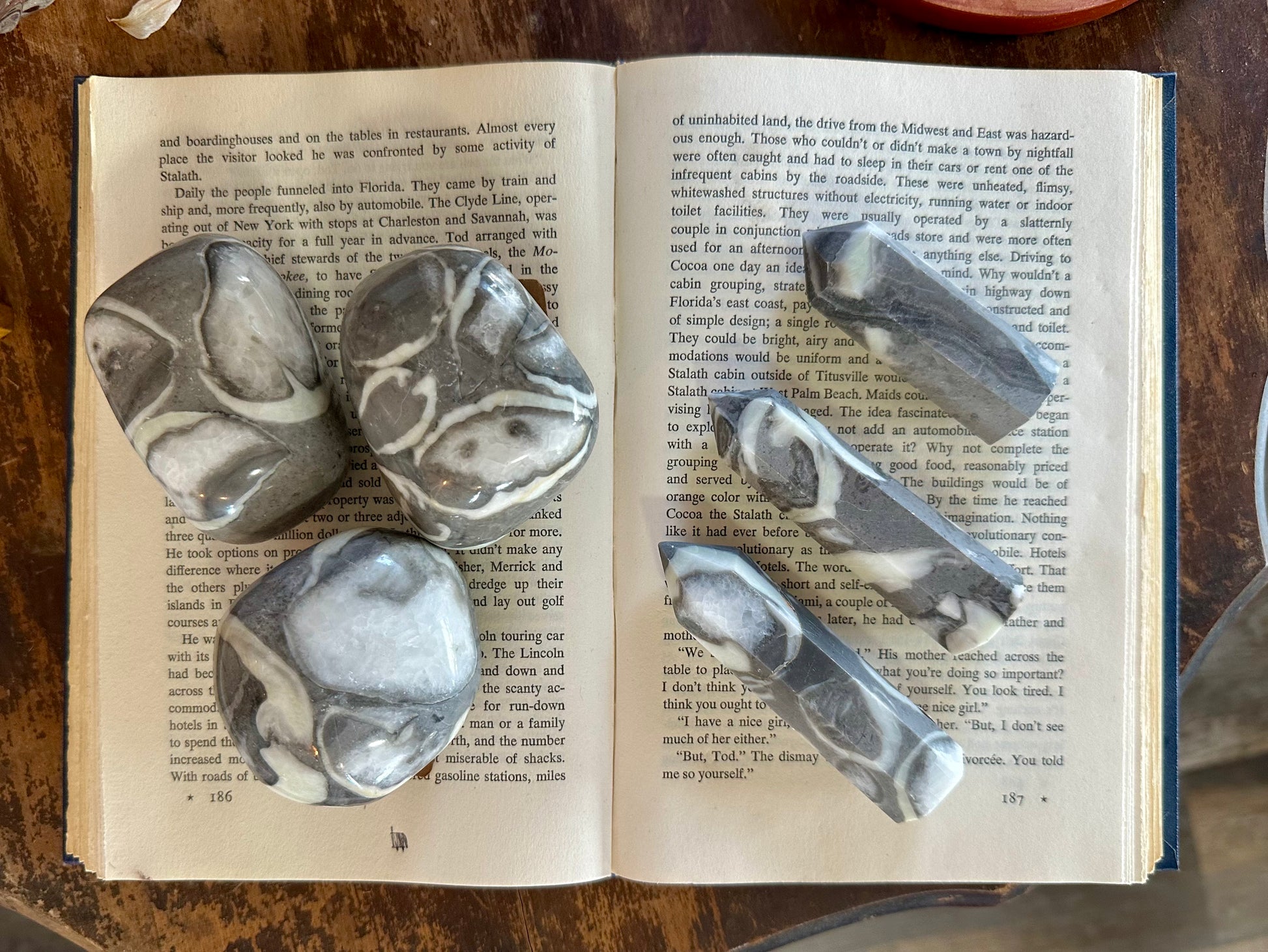 Shell Jasper is said to create serenity and satisfaction while providing stability and protection. It is said to offer vigor on the physical, emotional and mental plane which in turn helps people to establish a very practical and safe spiritual connection.